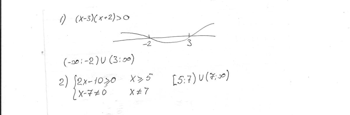 1) 2)Найти область определения функции: y=√(2х-10) + 1/(x-7).