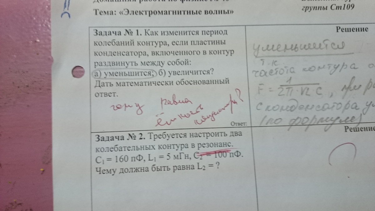 d - расстояние между пластинами, при увеличении d емкость С уменьшается, период тоже.