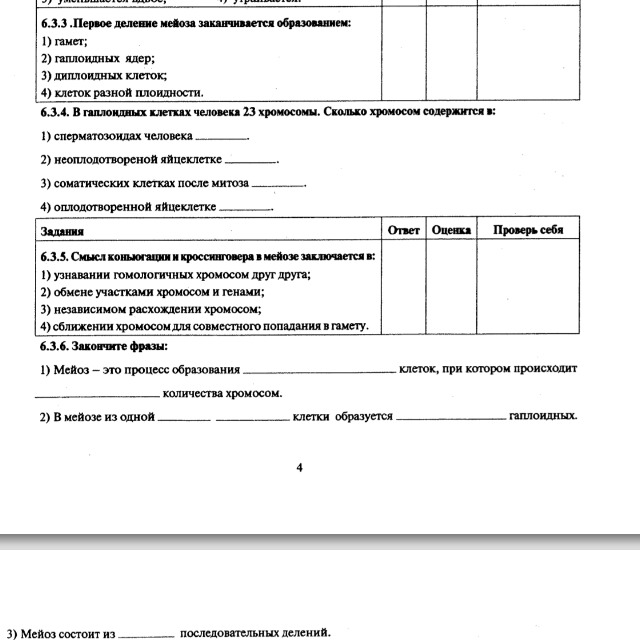 1) Мейоз - это процесс образования половых клеток, при котором происходит редукция количества хромосом.