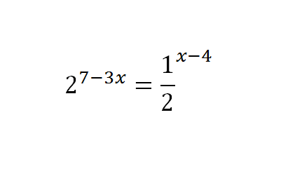 2 ^{7-3x} = frac{1}{2}^{x-4}  \ 2 ^{7-3x} =2 ^{4-x}   \ 7-3x=4-x \ -3x+x=4-7 \ -2x=-3 \ x=1.5