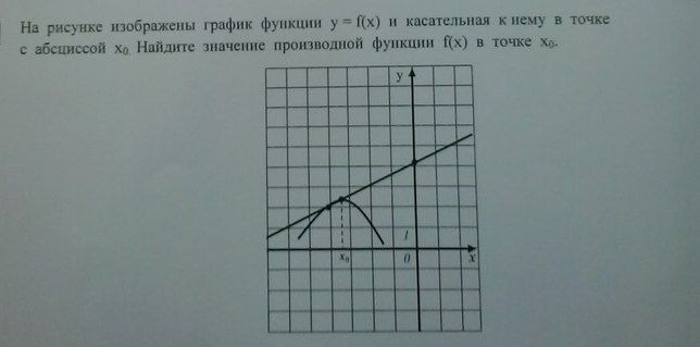 на рисунке изображены график функции y=f(x) и касательная к нему в точке с абсциссой x0. найдите значение производной функции f(x) в точке x0