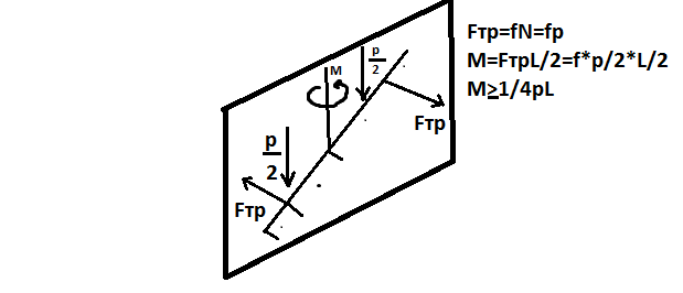 Однородная балка AB длины l и веса p лежит на шерховатой горизонтальной плоскости.Какой по модулю момент M способен вызвать вращение балки вокруг оси OZ , если давление балки на плоскость распределено равномерно, а коэффицыент трения о плоскость равен f