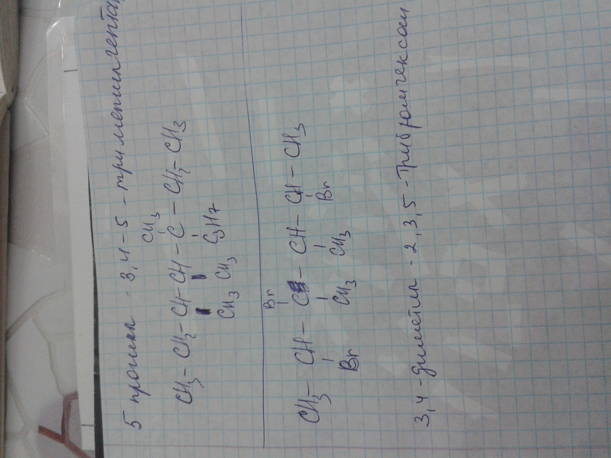 помогите пожалуйста написать структурные формулы 5-пропил-3,4,5-триметилгептан и 3,4-диметил-2,3,5-трибромгексан