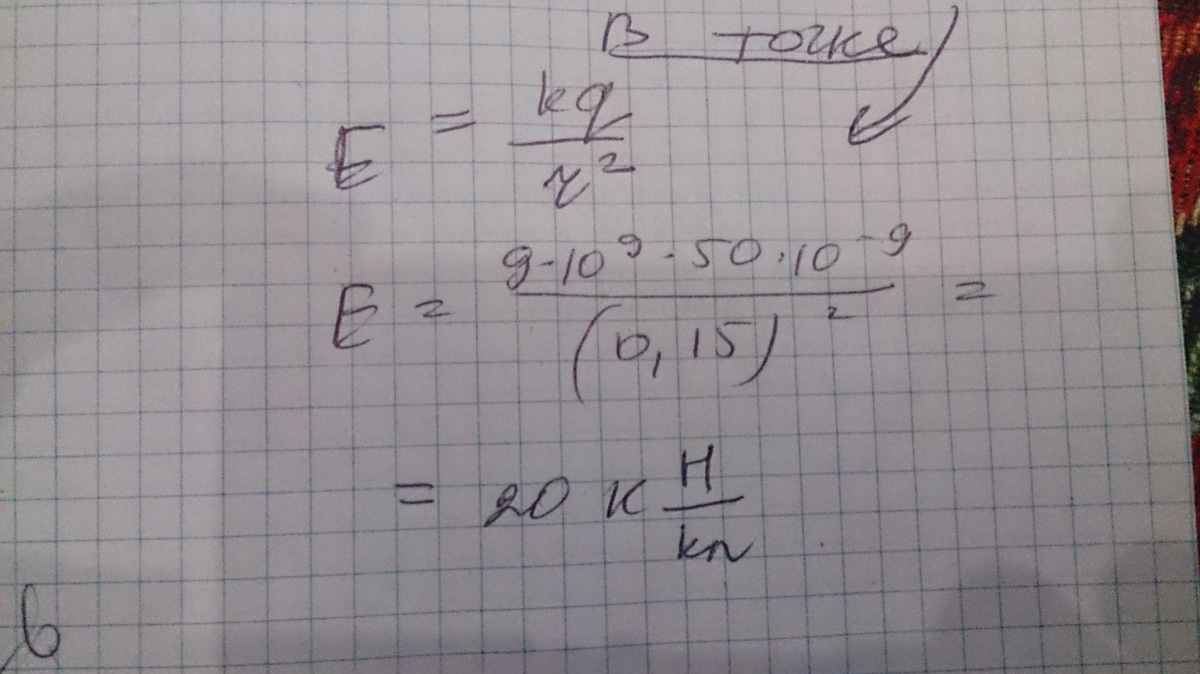 Какова напряженность электрического поля в точке , удалённой на 15 см от точечного заряда 50 нКЛ ?