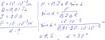 с индукцией 0,01 Тл. Сила тока в проводнике