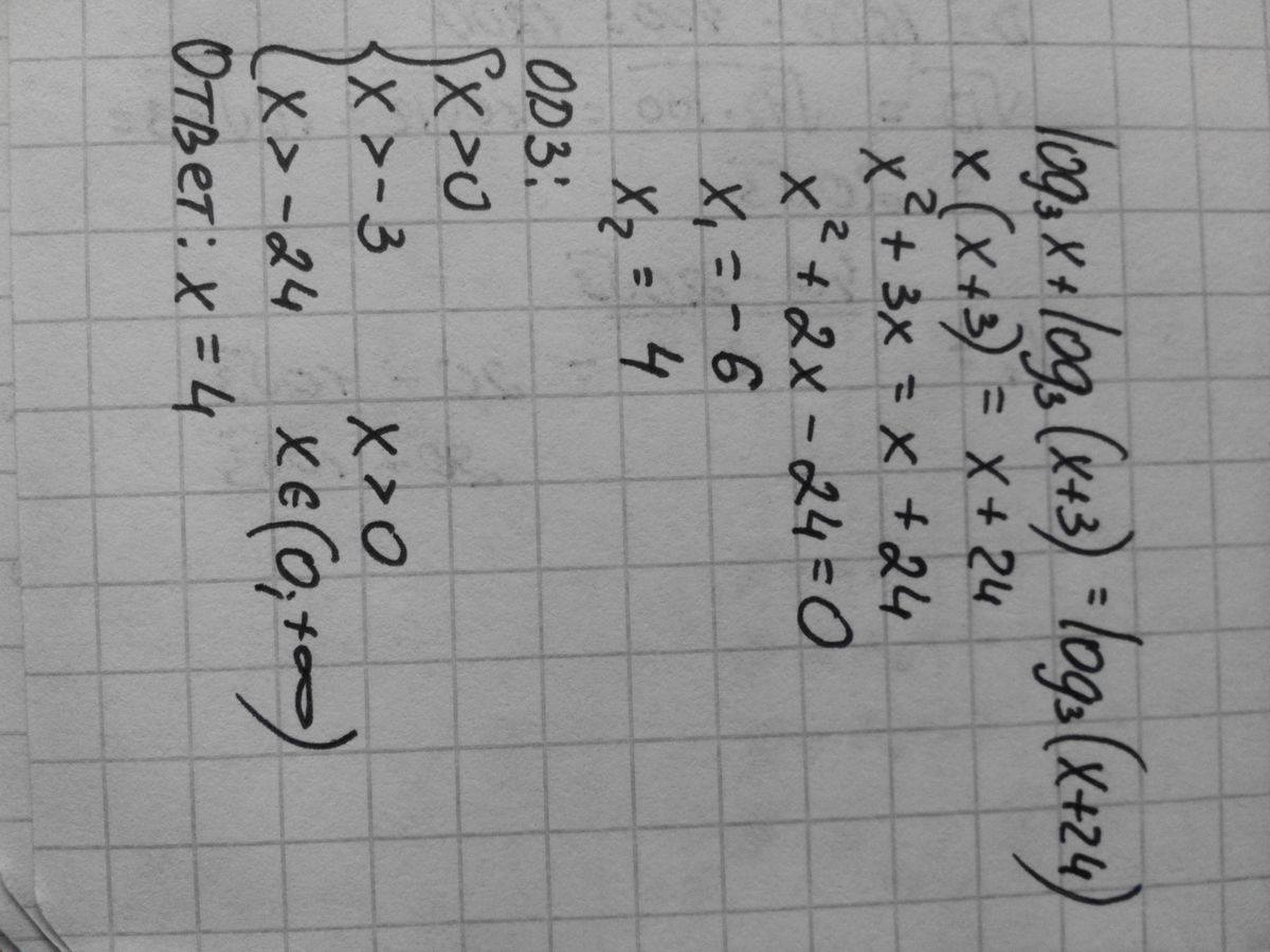 log3(x*(x+3))=log3(x+24)