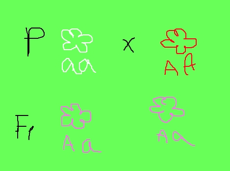 F1 розовые, т.к. они имеют промежуточный фенотип. У родителей доминантный ген не полностью подавляет проявление рецессивного гена и и получается гетерозигота с промежуточным фенотипом