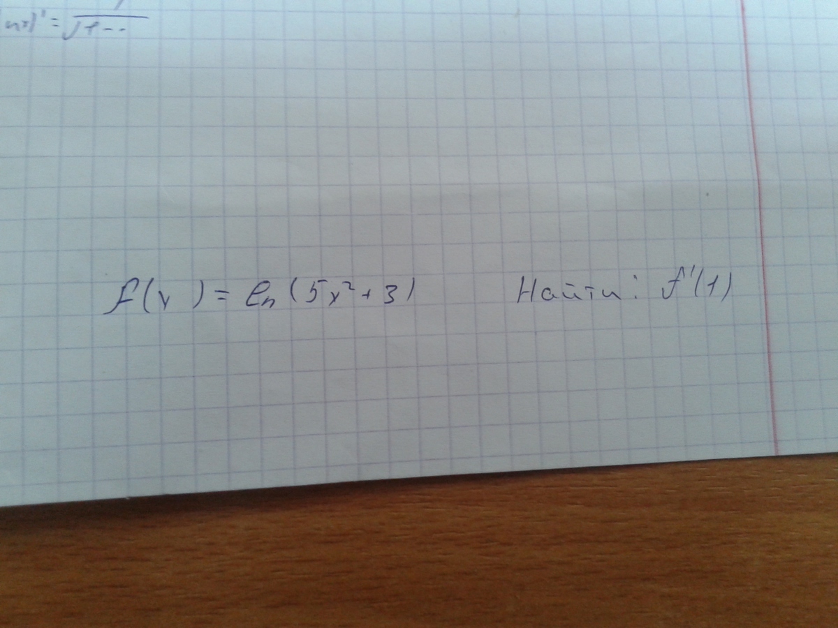 f ` (x)= frac{10x}{5x^2+3}  \ f ` (1)= frac{10*1}{5*1+3} = frac{10}{8}=1.25