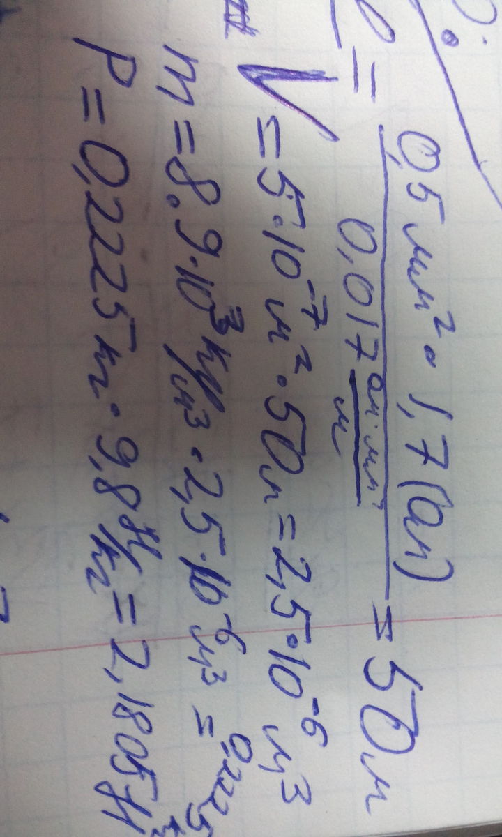 Определить, сколько весу потребуется меди для изготовления проволоки сопротивление 1,7 Ом и с сечение 0,5 мм^2.