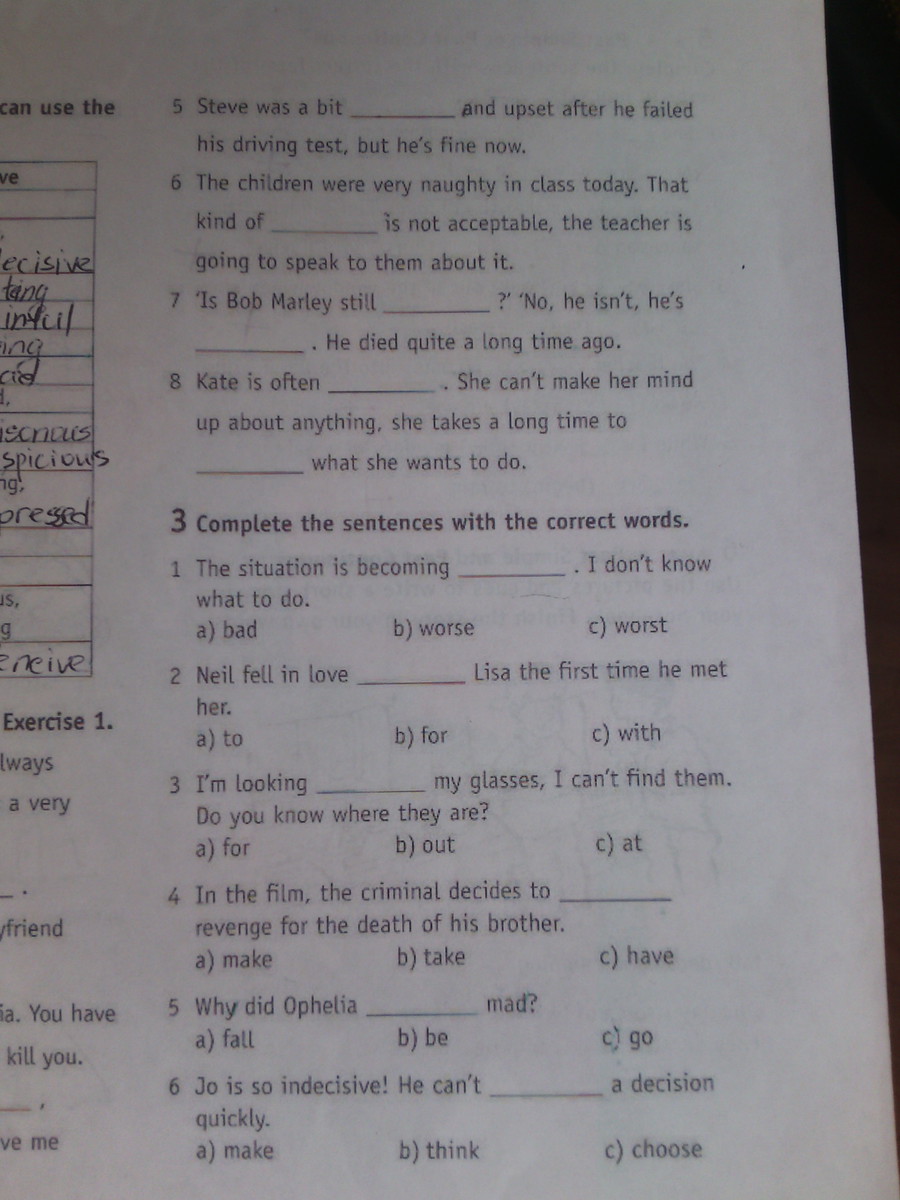 4) b, с (take revenge, have revenge – оба варианта правильные)
