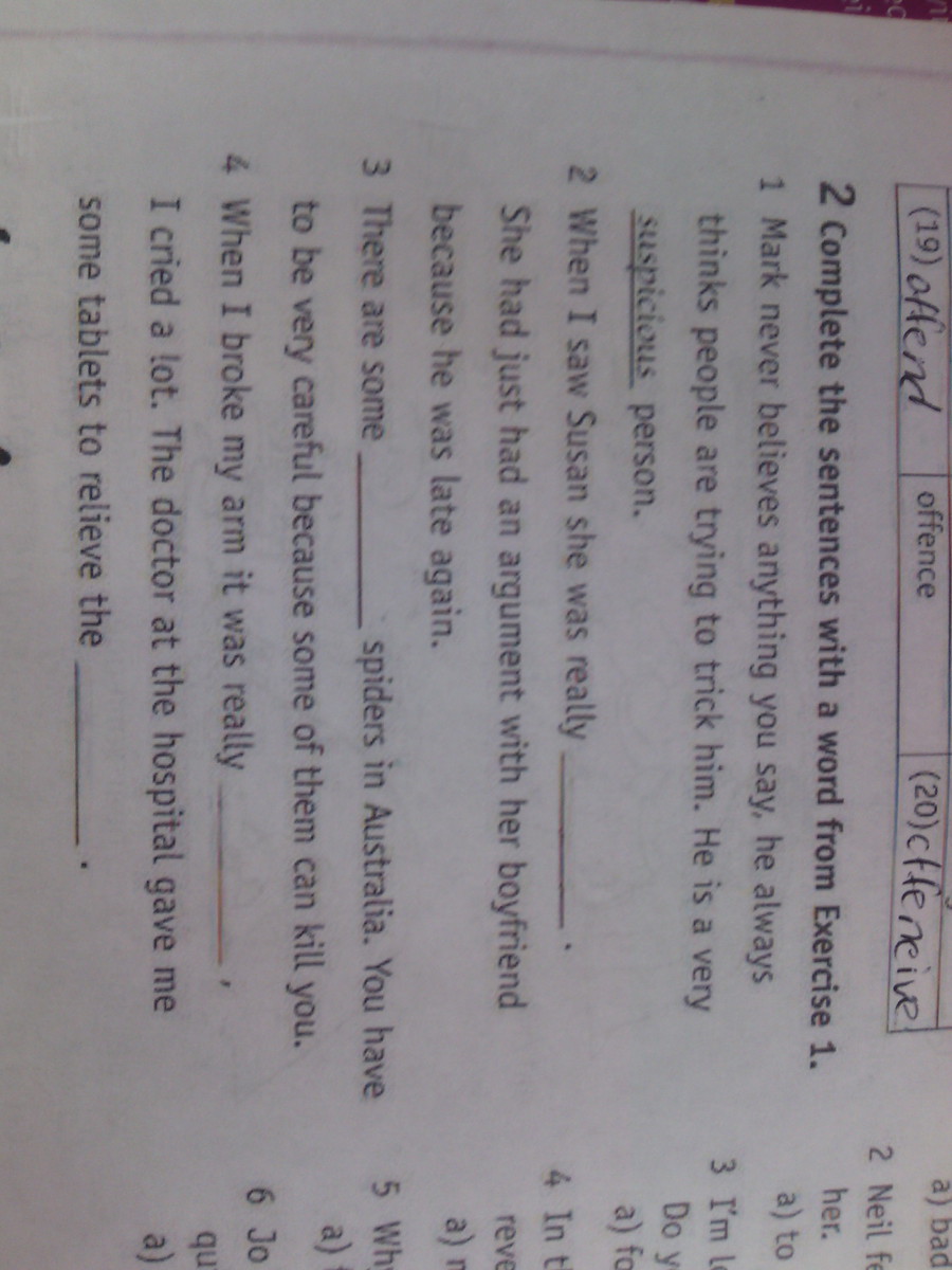 В упр. 2 нужно вставить слова из упр. 1! У тебя на фото нет 1 упр. Напиши, какие там слова!