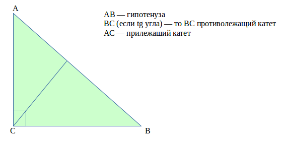 tg ∠A - отношение противолежащего катета к прилежащему катету