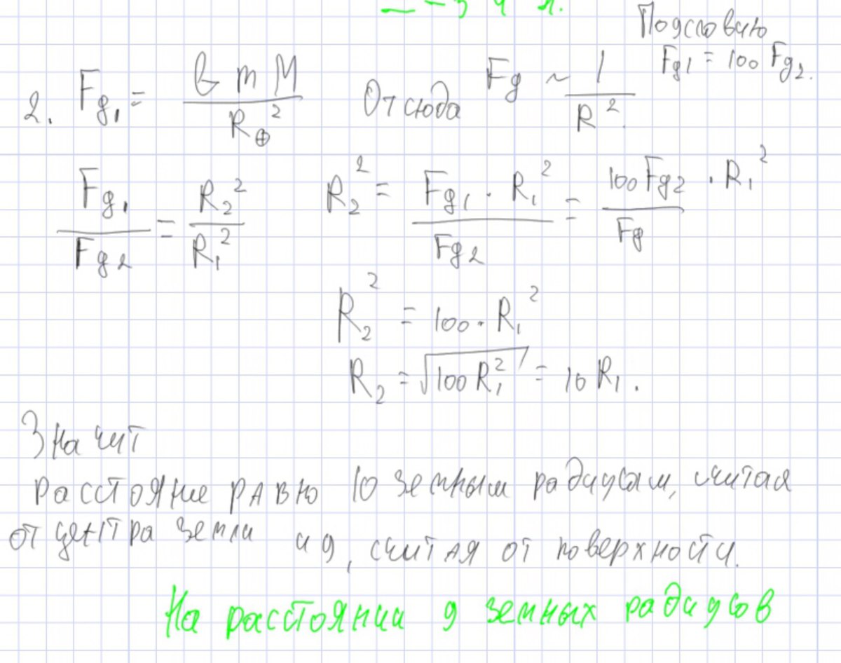 №2. На каком расстоянии от поверхности Земли сила притяжения космического коробля к ней станет в 100 раз меньше,чем на поверхности Земли?