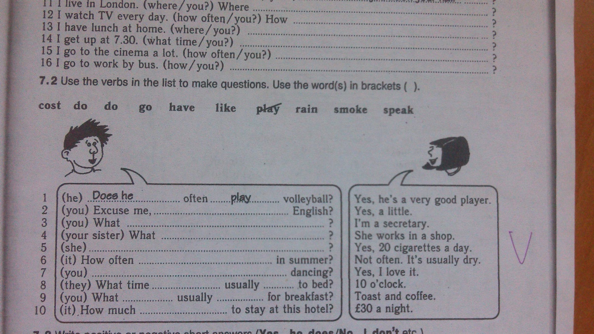 по шестому преложению вспомогательный глагол в ответе у Dasha пропущен: How often does it rain in summer?