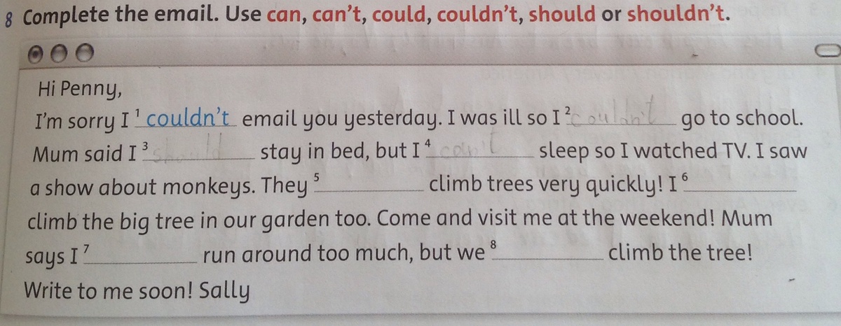 2-4-couldn't 5-could 6-can 7-shouldn't 8-can