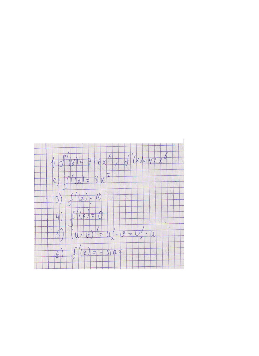 1. 42x⁶; 2 . 8x⁷ 3. 10 4. 0 5. u¹*v + u*v¹