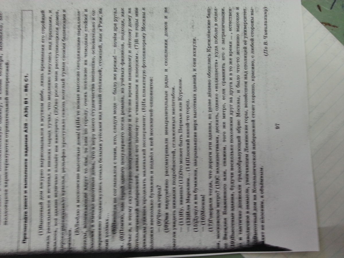 Автор обращает внимание на высотные дома, в частности его привлекает такой дом на Котельнической набережной, который "ажурно вырисовывался на мутном небе". Повествователь подчеркивает, что по поводу этих домов существовали разные мнения, в частности он приводит утверждение, которое слышал, что этот дом "чванливый и плоский".Он не согласен с этим. Да, эти здания обошлись недешево, но не только эти архитектурные объекты были дорогими. Главное было в том, что высотные дома помогли создать неповторимый облик города. Это подтверждается с помощью эксперимента, который показал, что без этих зданий Москва похожа на многочисленные города, а только с ними она становится узнаваемой.