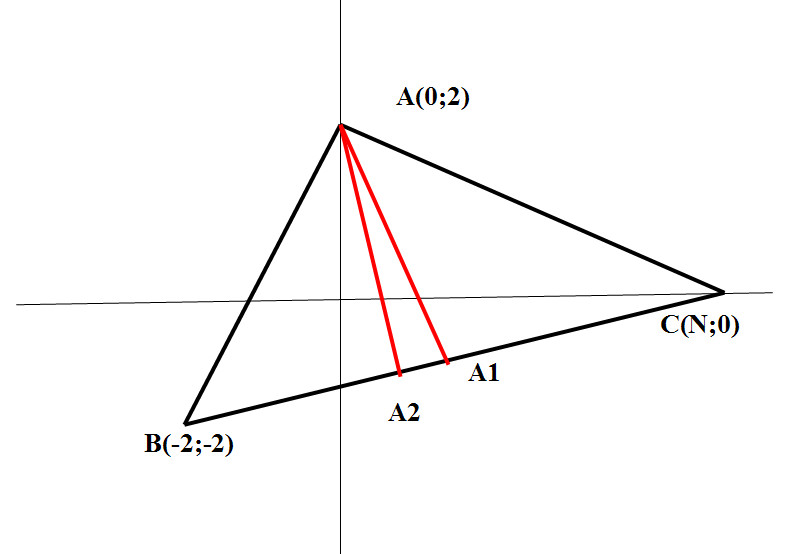 уравнение медианы АА1 (A(0;2) и A1(-1+0,5N ; -1)):