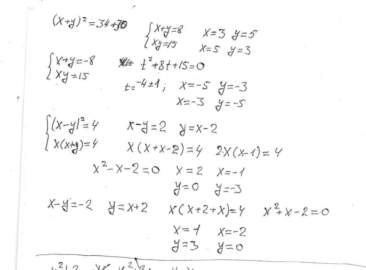 Ответ: (5; 3), (-5; -3), (3; 5), (-3; -5)