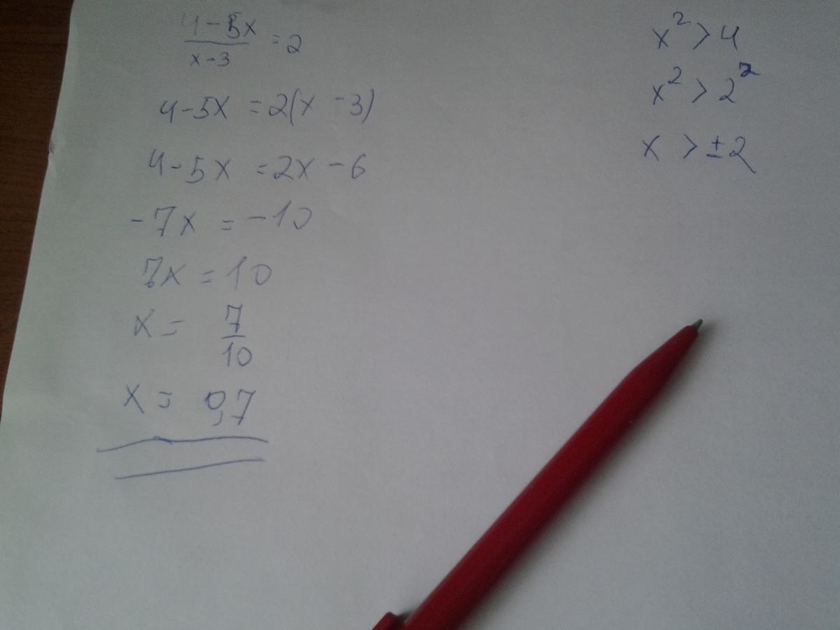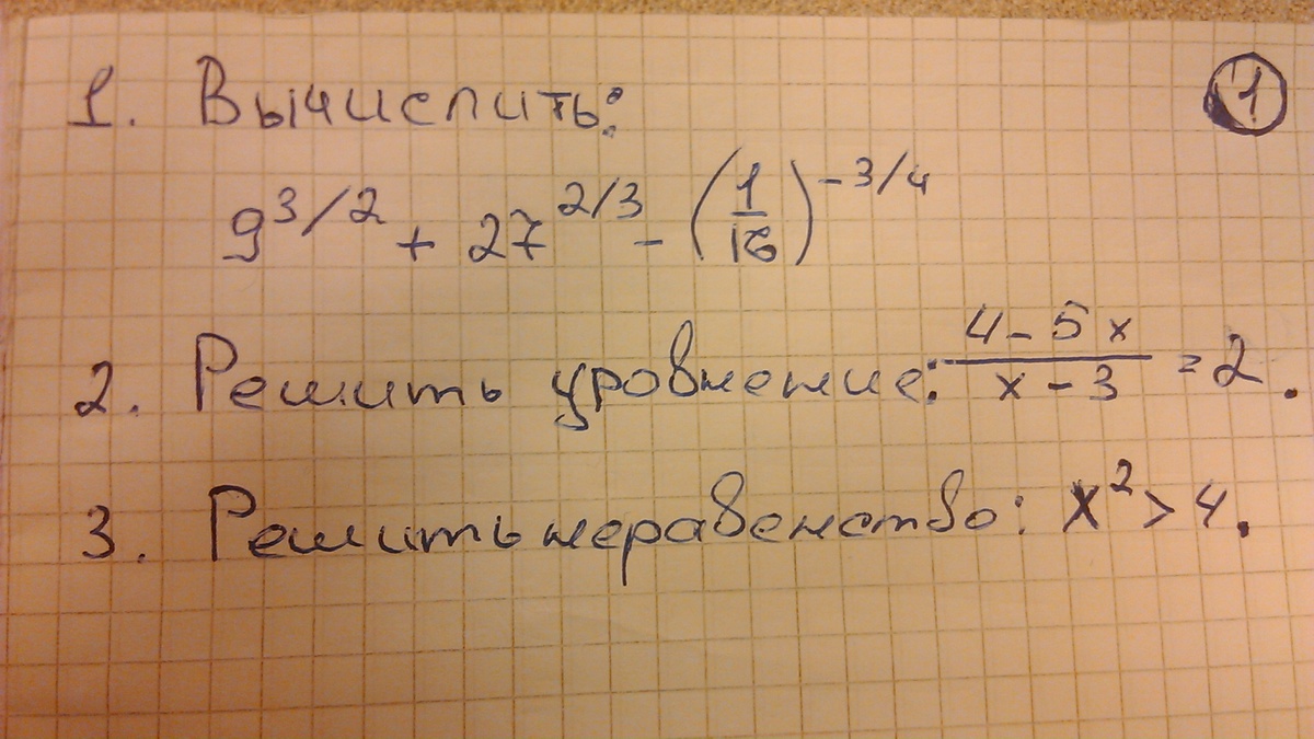 1. 3^3+3^2-2^3=27+9-8=28. 2. 4-5х=2(х-3). 7х=10. х=10/7. 3. Х больше 2
