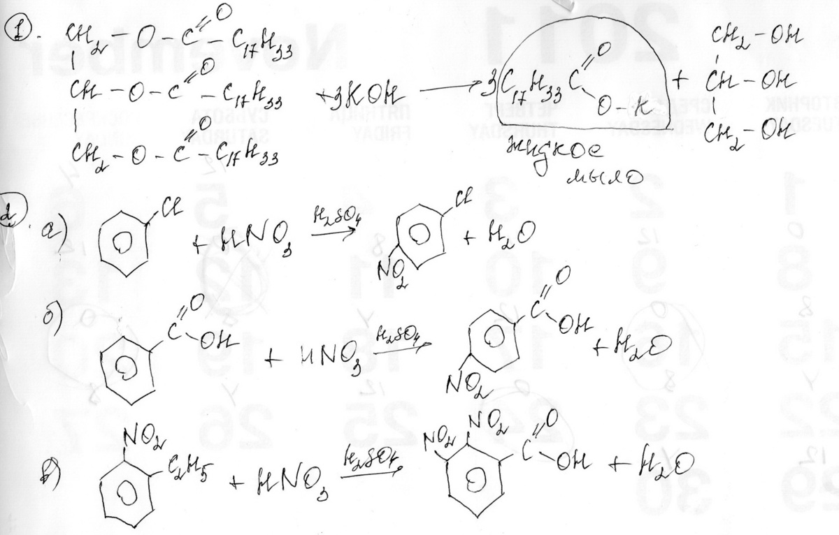 1) Написать реакцию щелочного омыления жира. Написать формулу жидкого мыла.