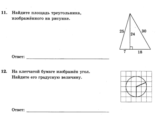 12) Этот угол больше 90 градусов. Та часть, которая превышает 90 градусов явно меньше 45 градусов. Скорее 30 градусов. Поэтому градусная мера этого угла близка к 90+30=120 градусам