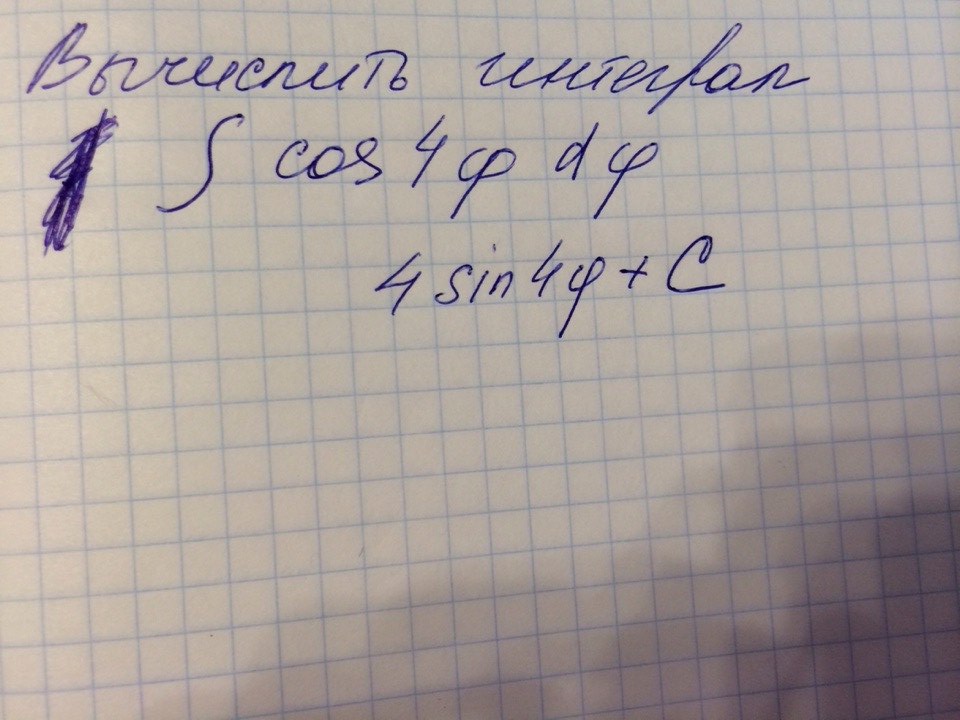 Ответ 1/4 sin 4(фи) +С , где С постоянное число