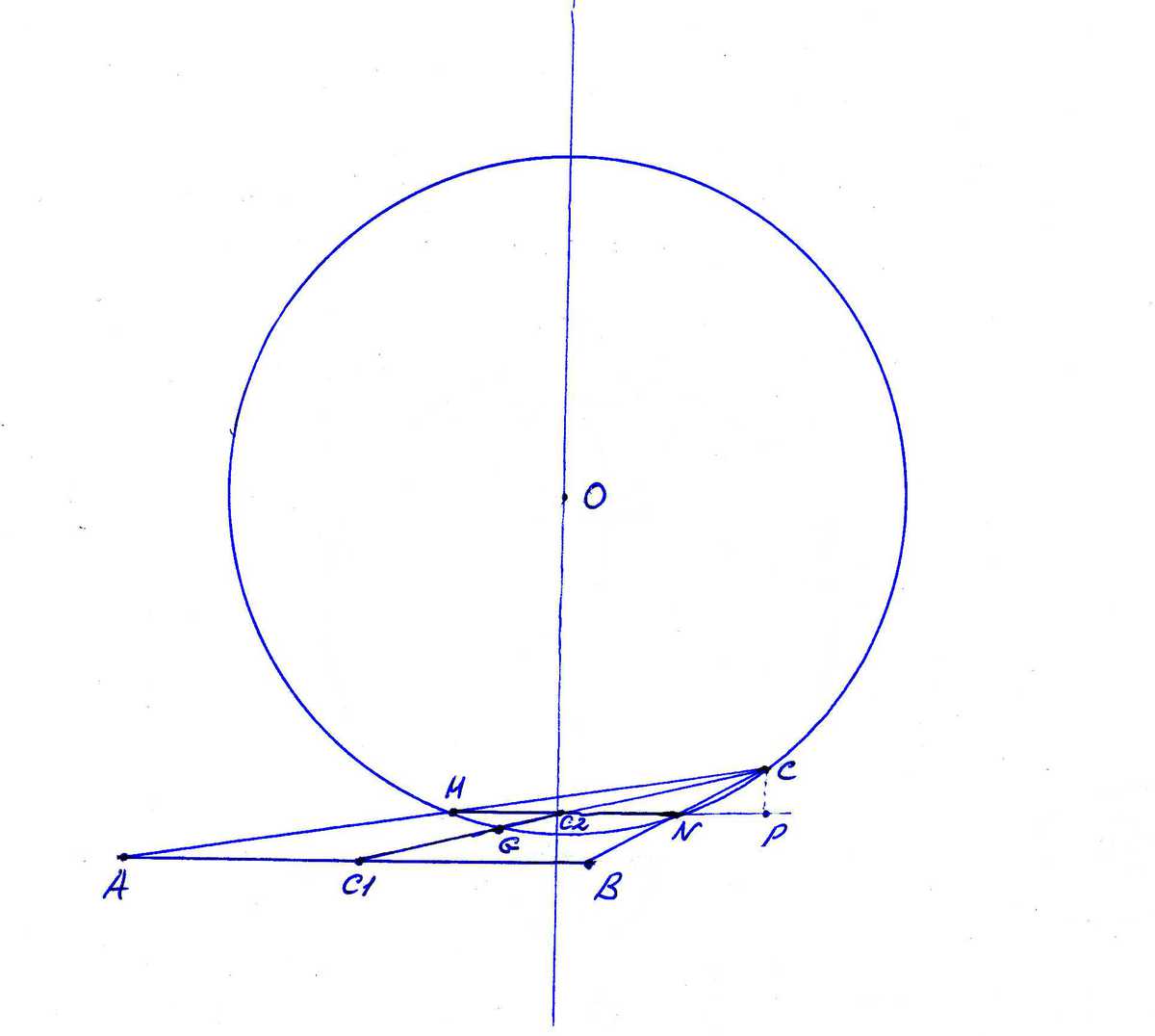 CP = y; C2P = x; C2O = d; по смыслу y = h/2; h - высота треугольника ABC;