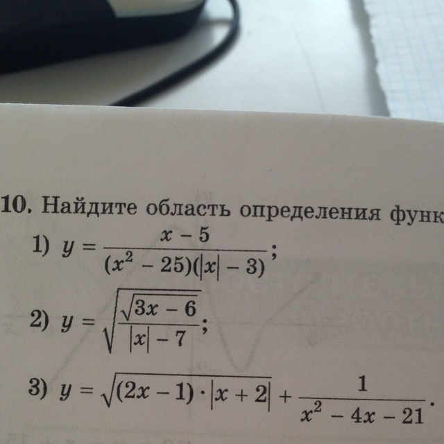 3) Подкоренное выражение должно быть неотрицательным: но так как под корнем стоит произведения модуля, а модуль всегда неотрицателен, то второе выражение 2х-1≥0. Знаменатель дроби не должен равняться нулю: x²-4х-21≠0