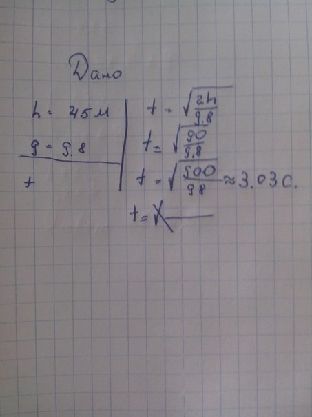 Тело упало с высоты 45 м. Каково время падения тела?