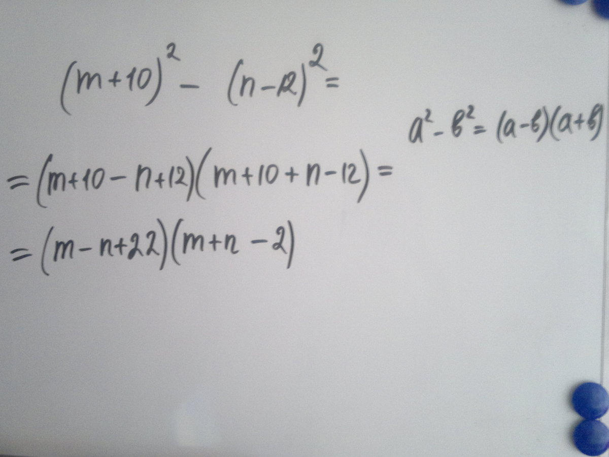 (m+10)²-(n-12)²=(m+10-(n-12))*(m+10+n-12)=(m-n+22)(m+n -2)