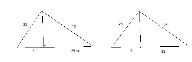 б)Дві сторони трикутника відносяться,як 5:8. Висота, проведена до третьої сторони,ділить її на відрізки 7 і 32 см. Знайдіть сторони трикутника.