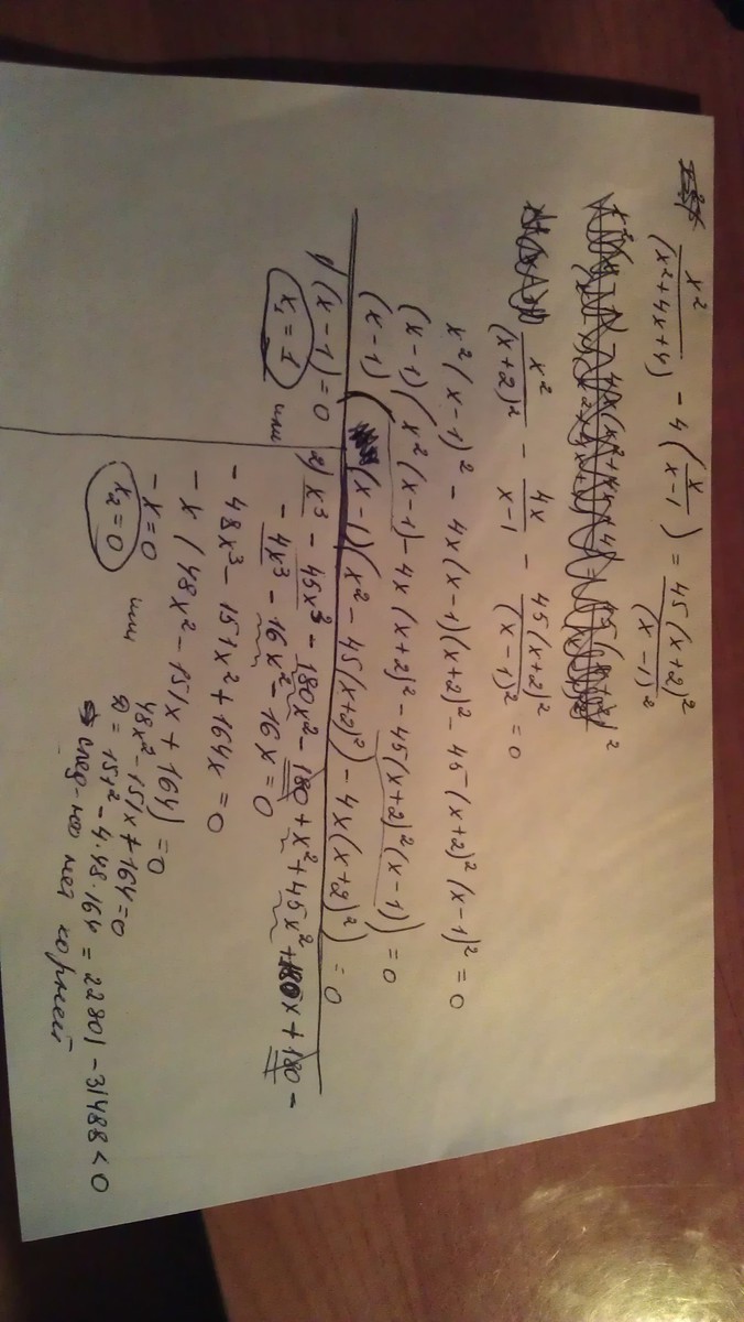 Что-то вроде этого. первый корень 0, второй нужно пересчитать, для этого надо разложить второй многочлен, приравнять его к нулю и вычислить х