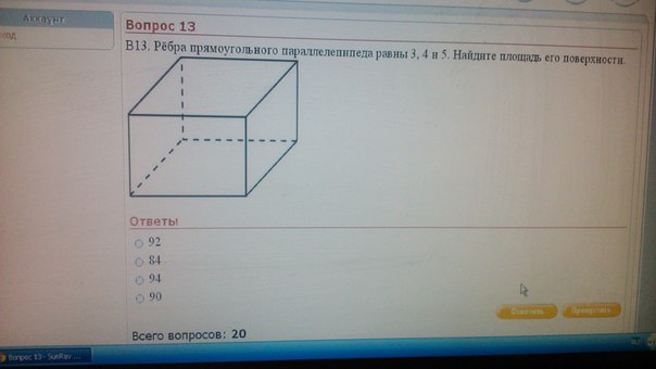 Ребра прямоугольного параллелепипеда равны 3,4,5 см. Найдите площадь его поверхности.