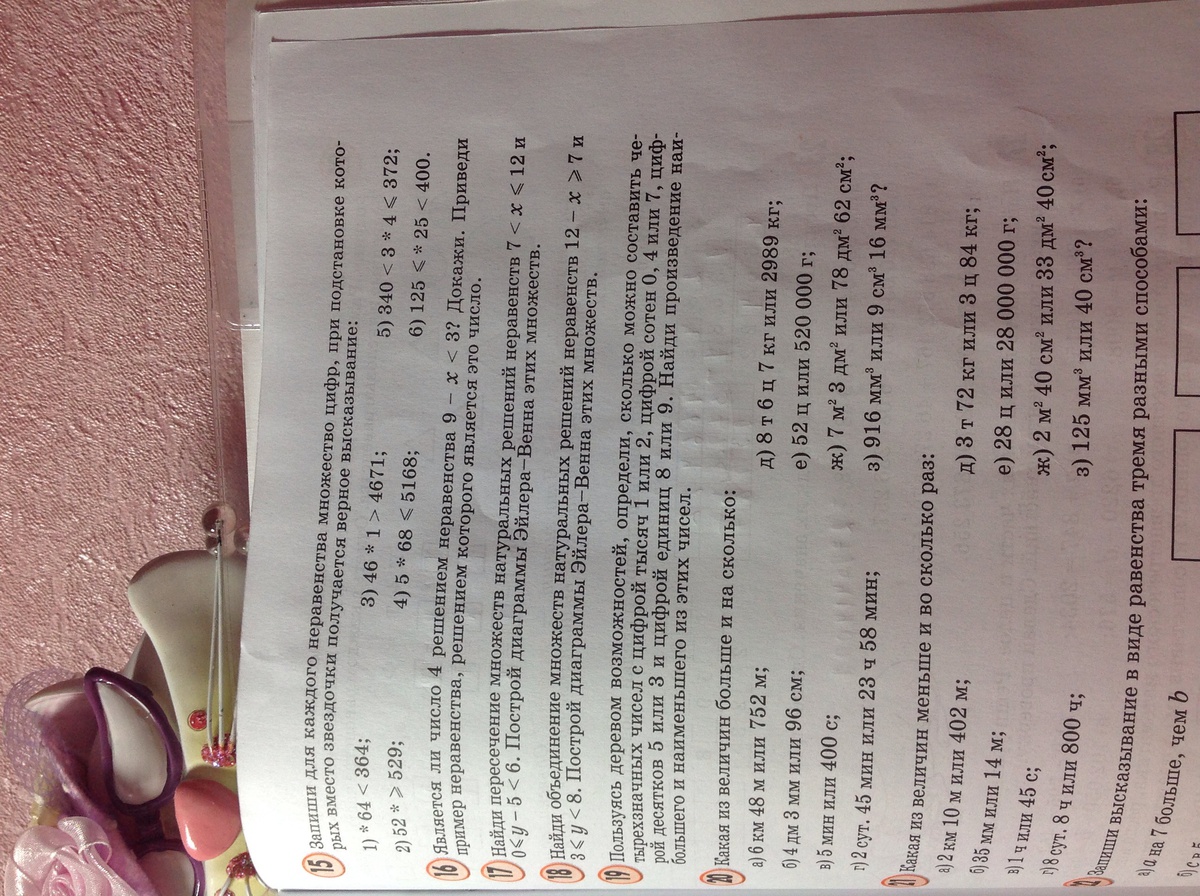 Номер 15. Запиши для каждого неравенства множество цифр,при подстановке которых вместо звёздочки получается верное высказывание.