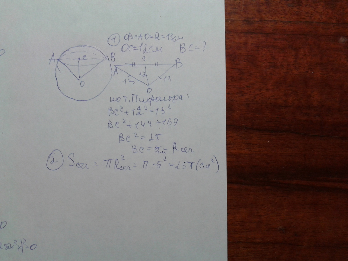 пожалуйста помогите решить) на расстоянии 12 см от центра шара ,радиус которого равен 13 см , проведено сечение плоскостью.надите площадь сечения.