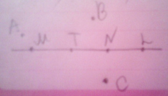 Точки А,В и С не лежат на прямой, а точки M, T, N и L лежат на ней.
