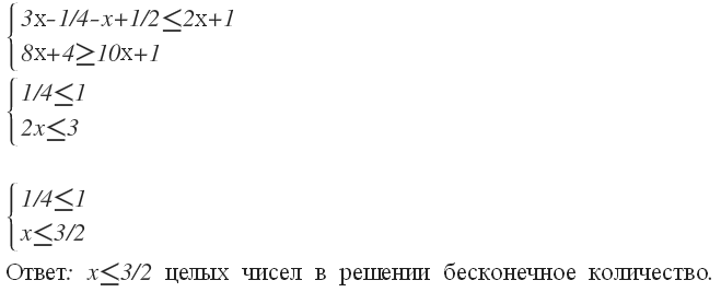 скільки цілих чисел містить множина розв'язків системи нерівностей 3x-14 - x+12 <=2х+1