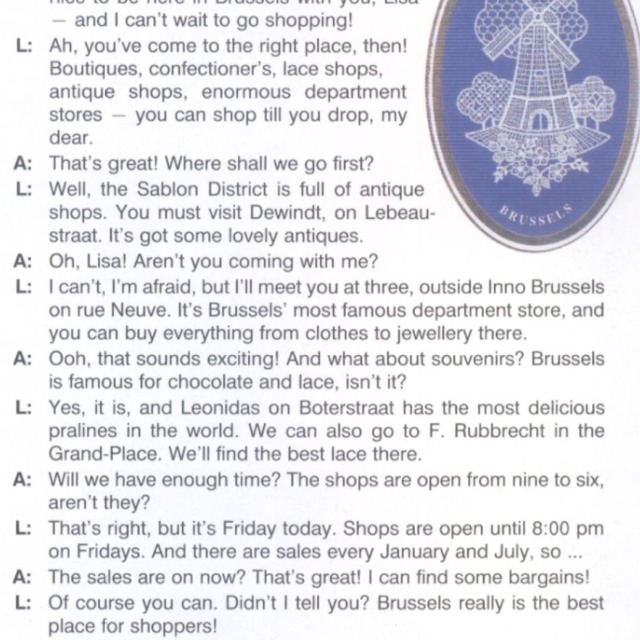 Л: Конечно ты можешь. Я тебе ещё не сказала? Брюссель - воистину лучшее место для покупателей!