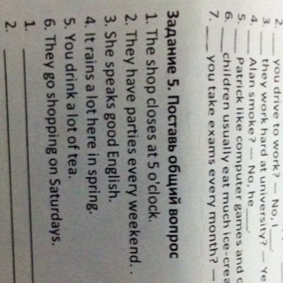 5) Does the shop close at 5 or at 6 p.m.? The shop closes at 5 p.m.