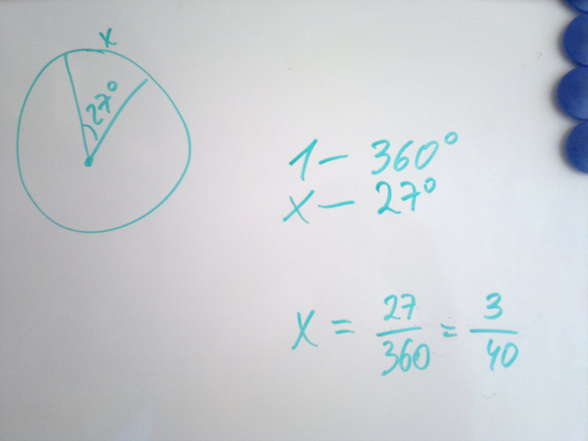 Какую часть окружности составляет дуга соответсвующая центральному углу в 27 градусов Какую часть окружности составляет дуга соответствующая центральному углу в 27 градусов
