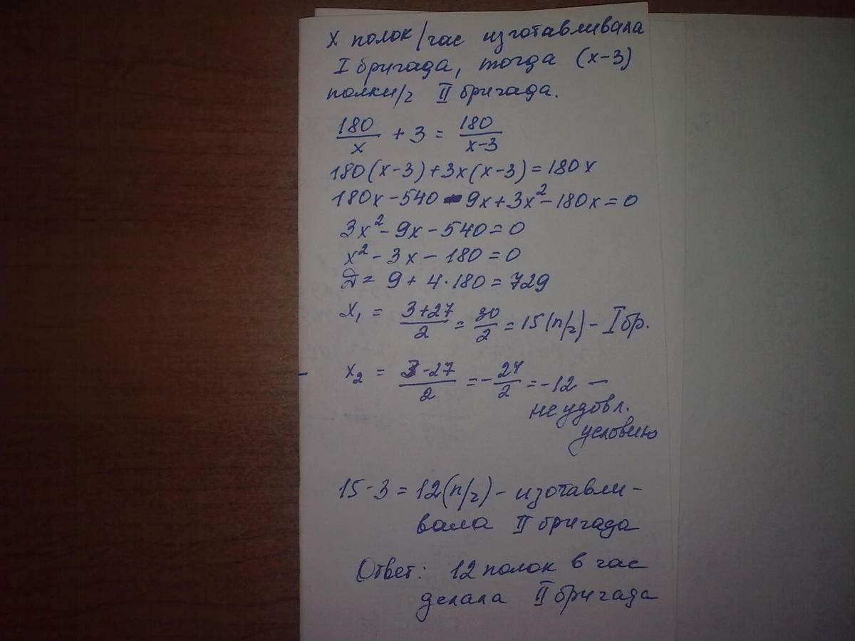 180/(х+3) часов делала первая бригада 180 полок