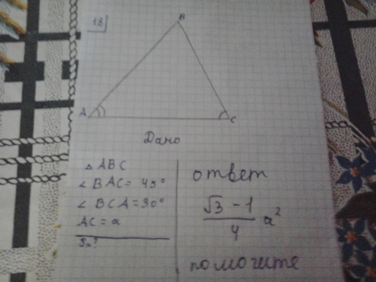 S=1/2·АС·ВС ·sin 30⁰=1/4·а·а·(√3-1)=а²(√3-1)/4