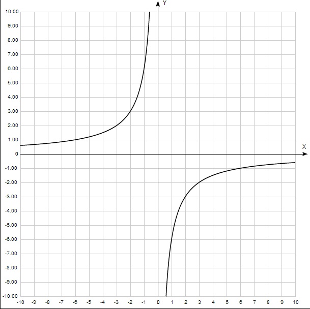 график симметричен относительно начала координат - нарисуй одну ветвь - вторую отобрази симметрично точки(0;0),Можно преобразовать график функции y=1/x путем симметричного отражения относительно оси абсцисс и растяжения графика от оси абсцисс в 6 раз, т.е. точка (x;y) перейдет в точку (x;-6y)