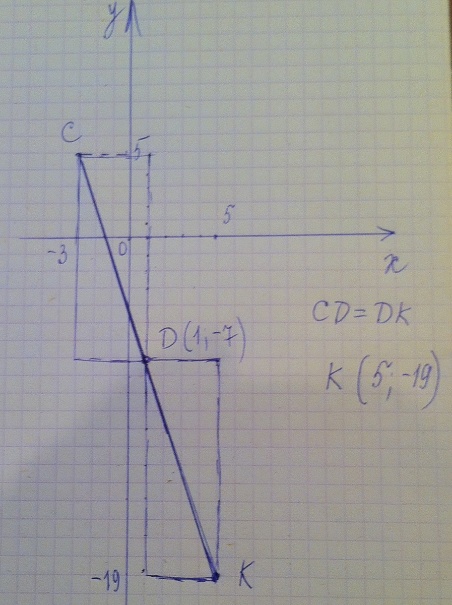 Точка К симметрична точке С относительно точки Д, если СД=ДК.