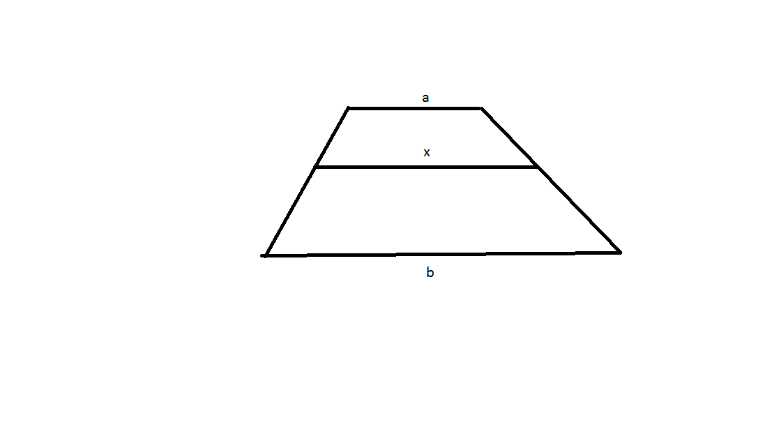 Раз трапеции подобны,то естественно отношения соответствующих сторон равны: a/x=x/b x^2=ab x=√ab