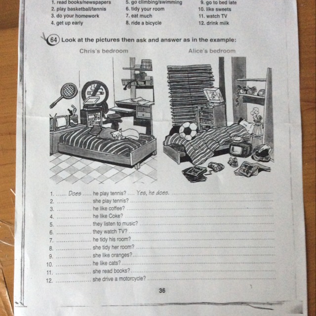 6. Do you tidy your room? Yes, I do.
