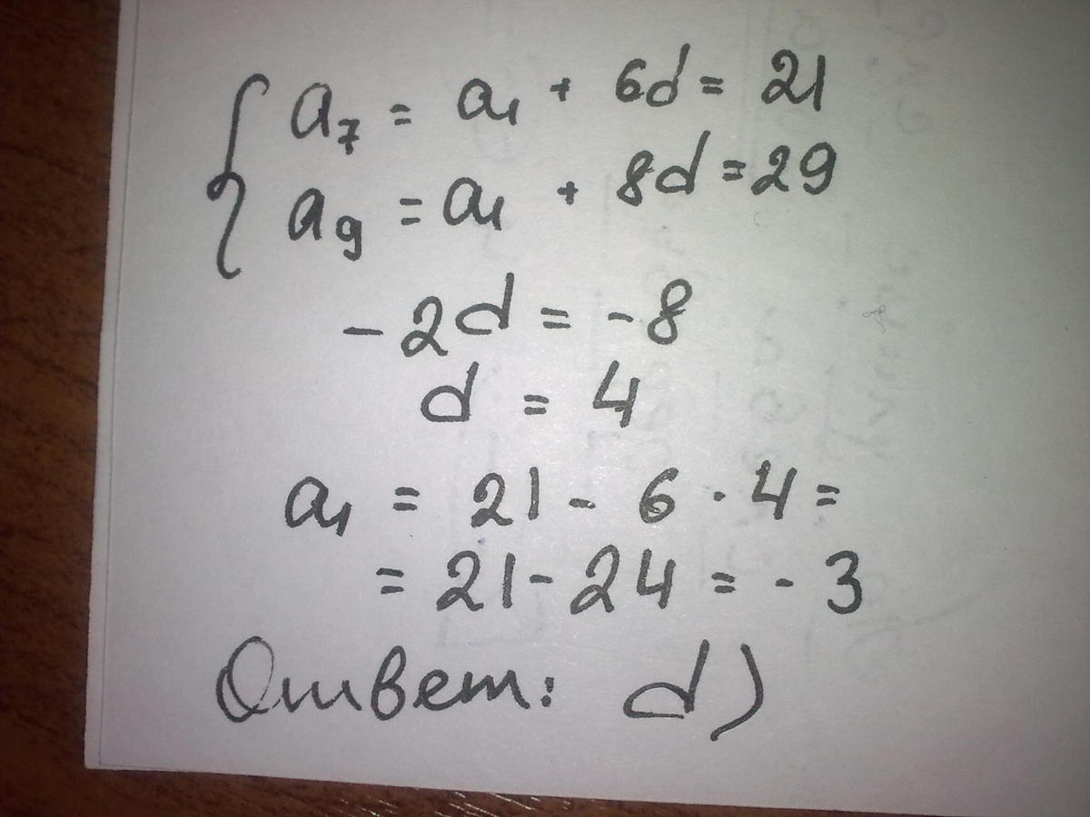 185.найти первый член и разнсть арифметической прогрессии,если а7=21,а9=29.