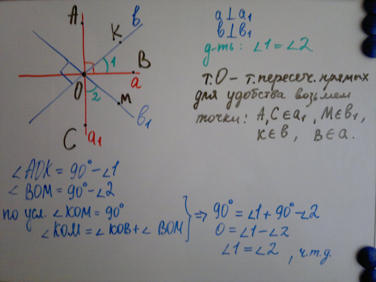 Докажите, что если a | a1, b | b1, то угол между прямыми а и b равен углу между прямыми a1 и b1. Рассмотрите случай, когда все прямые проходят через одну точку.