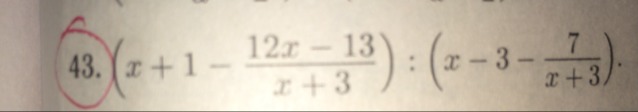 frac{x^2+3x+x+3-12x+13}{x+3}: frac{x^2+3x-3x-9-7}{x+3}= frac{x^2-8x+16}{x+3}* frac{x+3}{x^2-16} = frac{(x-4)^2}{(x-4)(x+4)}